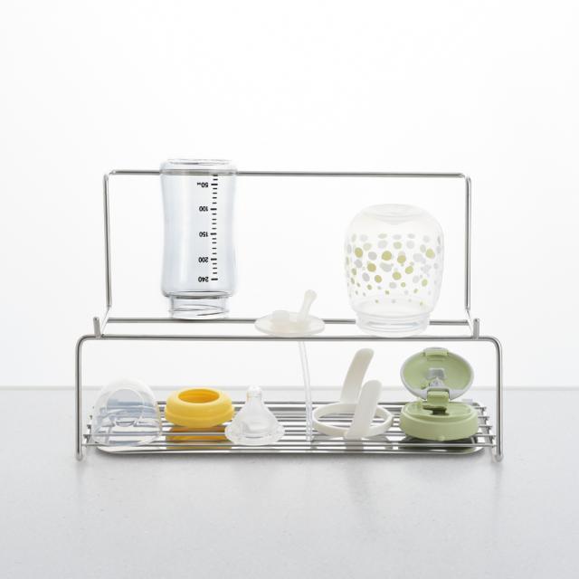 哺乳瓶の水切りにも最適。キャップ類もまとめて乾かせるから衛生的です。