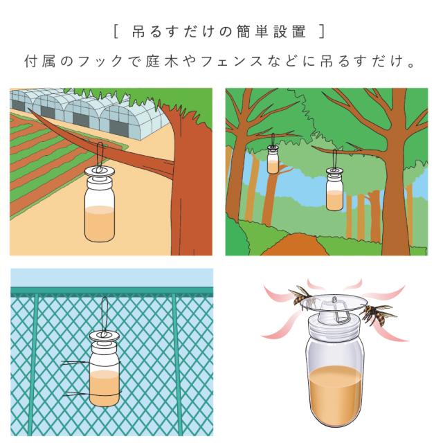 ハチ,蜂,退治,捕獲,吊るす,薬物不使用,スズメバチ,アシナガバチ,ハエ,コガネムシ,蚊,防虫,害虫,簡単設置,巣作り防止,家庭用,アイデア,便利グッズ,