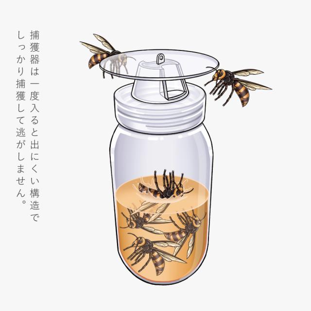 スズメバチが好む香りで誘引して液の発酵が進むにつれて誘引効果がアップします。
