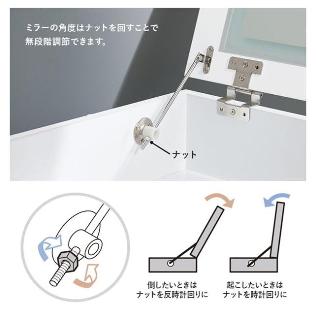 ●ミラーは使う人の身長に合わせてお好みの角度に無段階調節できます。