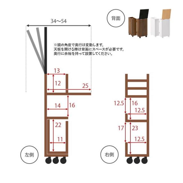 ドレッサー 鏡台 サイドテーブル コスメワゴン スリム 鏡付き 可動式ミラー ほぼ完成品