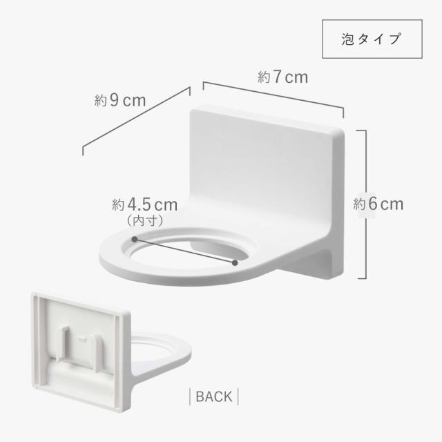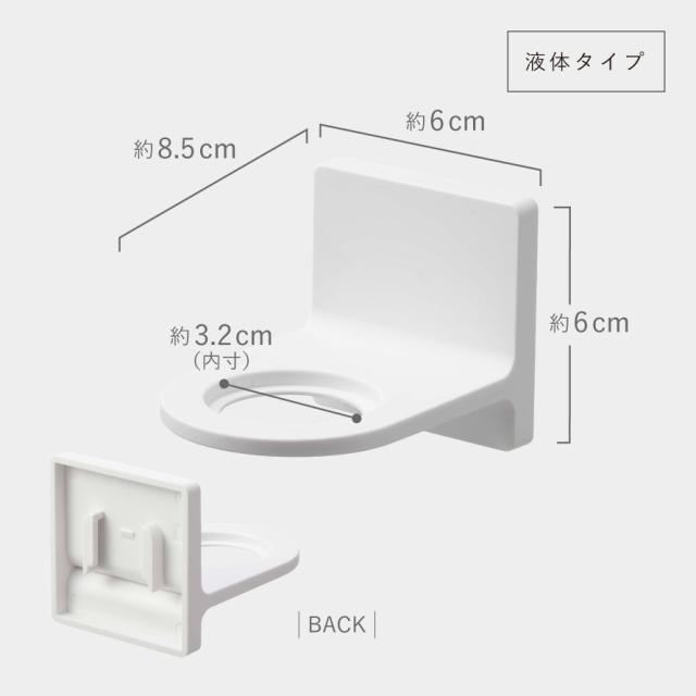 ■サイズ:ホルダー液体タイプ/本体 幅6×奥行8.5×高さ6cm、フィルムフック接着面 幅6×高さ6cm、ホルダー穴 直径3.2cm、補助リング 穴直径2.4cm・穴直径2.8cm(外径4cm)ホルダー泡タイプ/本体 幅7×奥行9×高さ6cm、フィルムフック接着面 幅6×高さ6cm、ホルダー穴 直径4.5cm、補助リング 穴直径3.9cm(外径5.2cm)