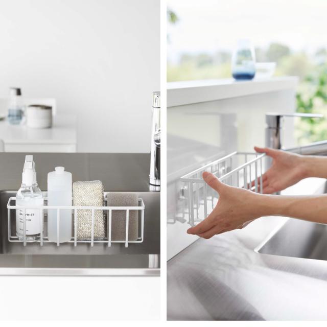 スポンジ、食器用洗剤、除菌スプレーなどまとめて収納できるワイドサイズ。