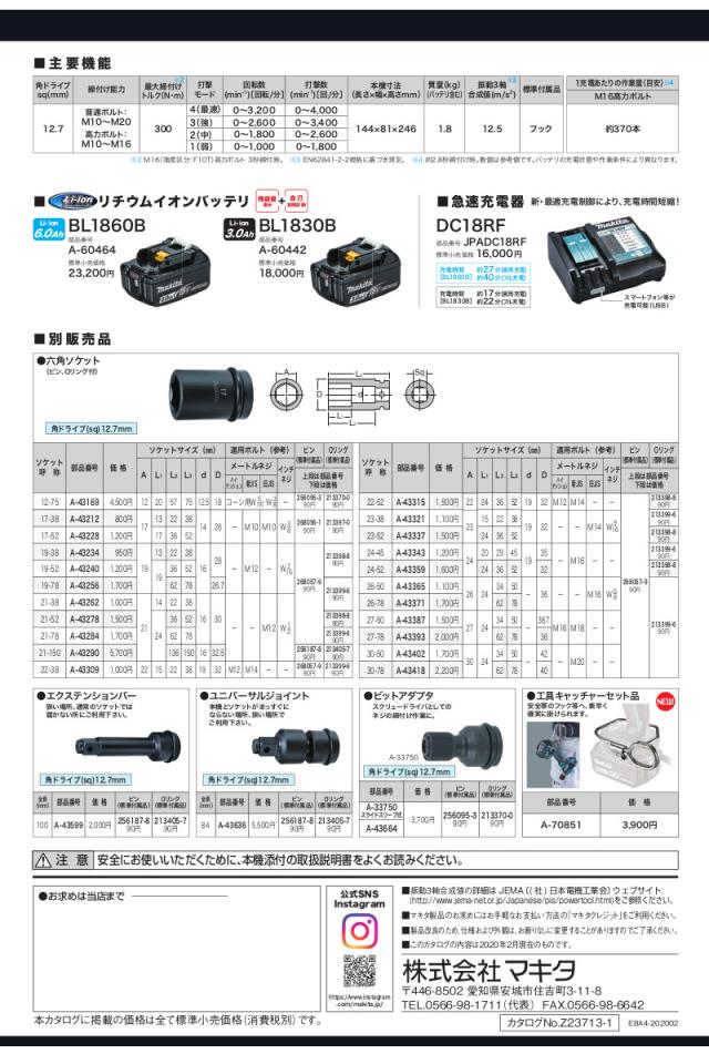 マキタ TW300DZ 充電式インパクトレンチ 18V トートバッグ 831253-8