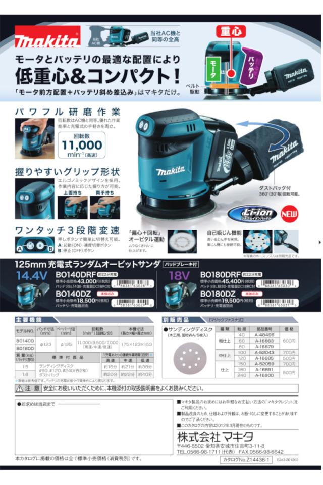 マキタ BO180DZ 充電式ランダムオービットサンダ 18V トートバッグ 831253-8