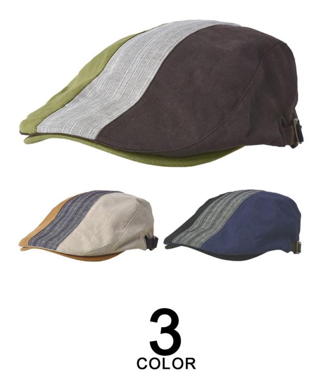 ハンチング 麻 リネン 切替 メンズ 帽子 春 夏 秋【Z7P】【パケ1】