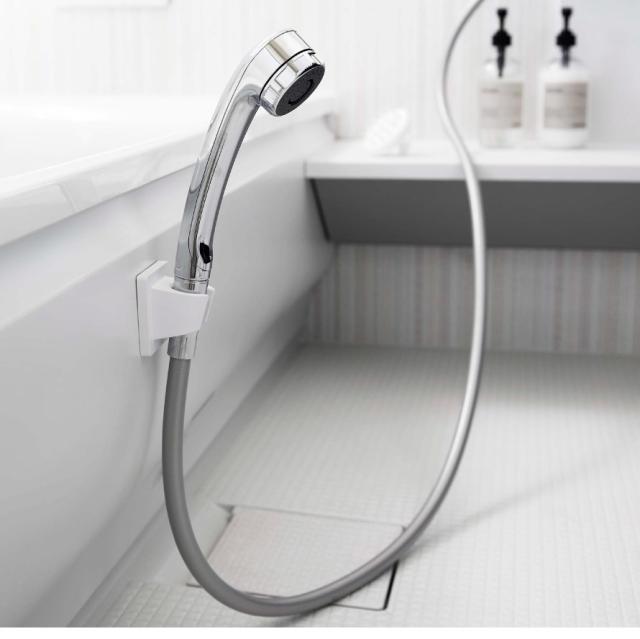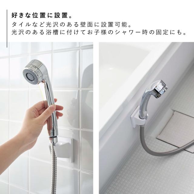 タイルにも取り付け可能!光沢のある浴槽にも設置できるので小さなお子様のシャワー時の固定にもおすすめ。介助の際にも便利です。
