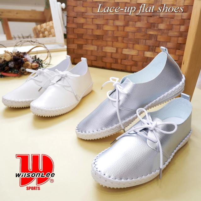 Wilson Lee ウィルソン・リー フラットシューズ 靴 レディース 歩きやすい レースアップ シューズ 柔らかい 歩きやすい