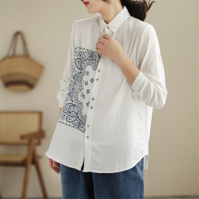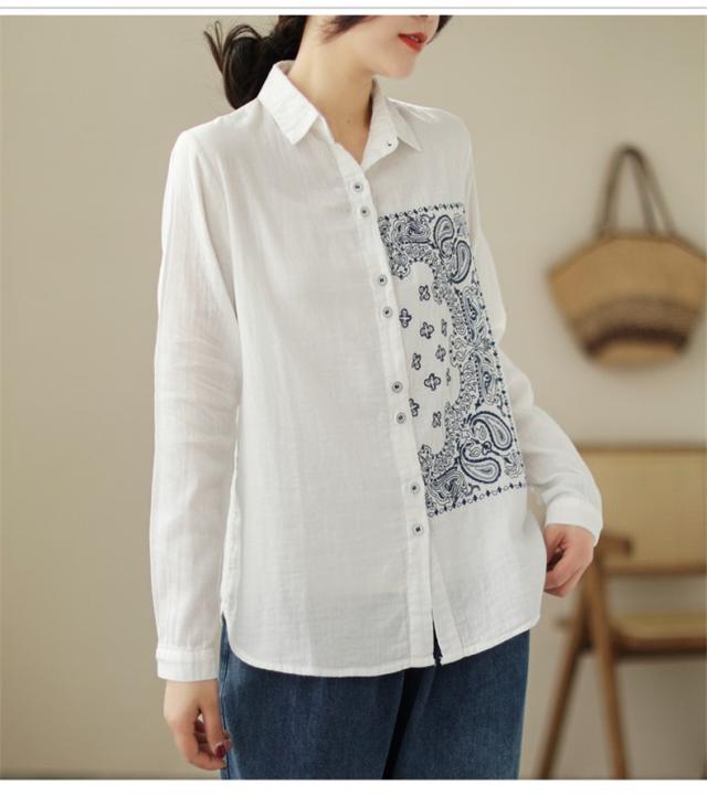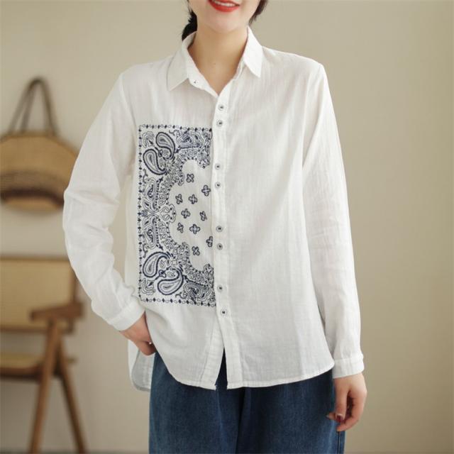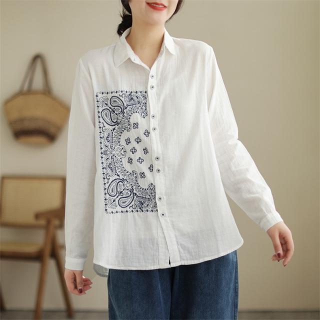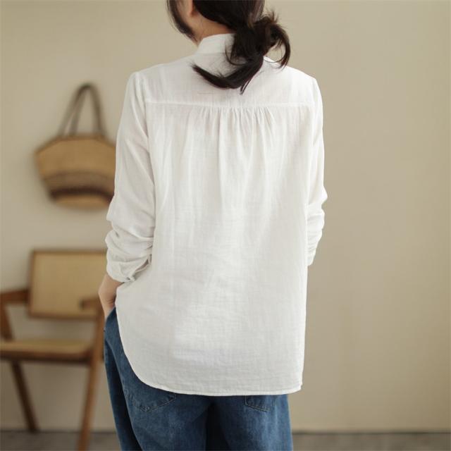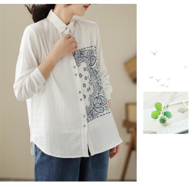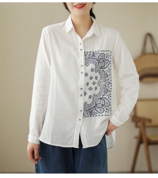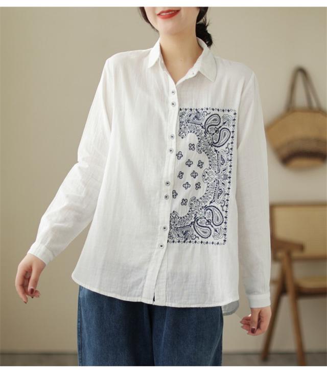 春シャツ ブラウス トップス レディース 長袖 前開き 刺繍 チュニック丈 大人カジュアル 着痩せ 春夏 インでもアウトでも着回しOK 大人っぽく上品に