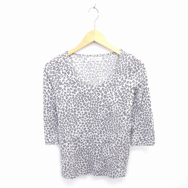 【中古】B&Y ユナイテッドアローズ ニット セーター ヒョウ柄 レオパード 丸首 薄手 七分袖 グレー /TT22 レディース