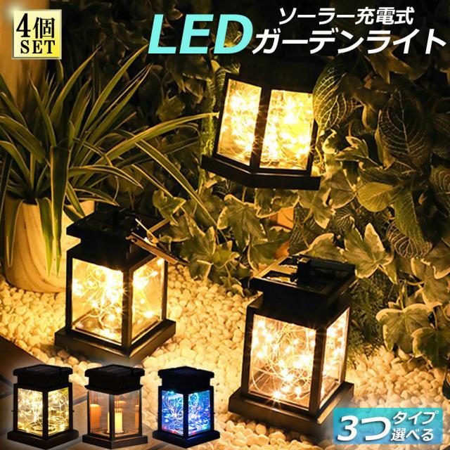 ガーデンライト ソーラーライト ランタン ランタノ 4個セット イルミネーションライト ソーラーランタン 3タイプ 屋外 おしゃれ かわいい 吊り下げ式 庭園灯 電球型 応急 防災 停電用 災害グッズ 照明 アウトドア 自動点滅 省エネ キャンプ 飾り 庭