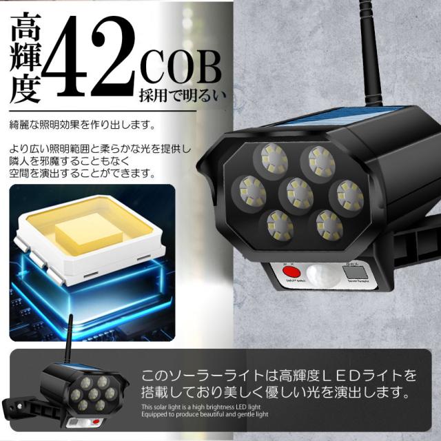 ソーラーライト 屋外 led ダミーカメラ 防犯カメラ型 ダミーカメラ 42LED センサーライト 屋外照明 人感センサーライト 3つ点灯モード 防水 防塵 電源不要 防犯カメラ型 自動夜間点灯 人感検知 ダミーカメラ型ライト 壁掛け庭先 玄関周りなど対応