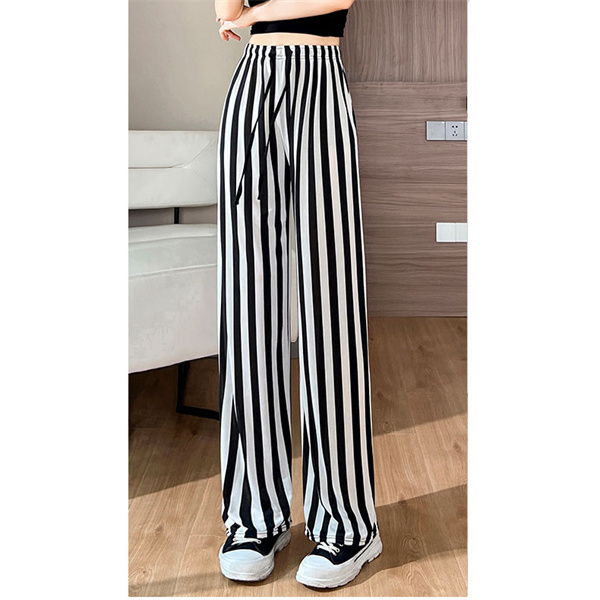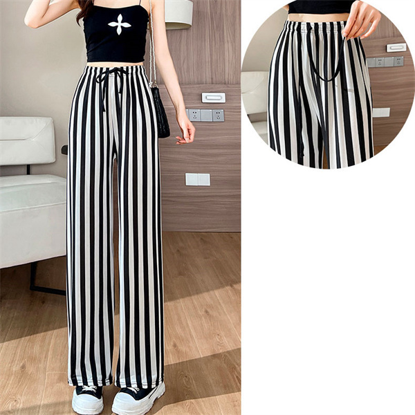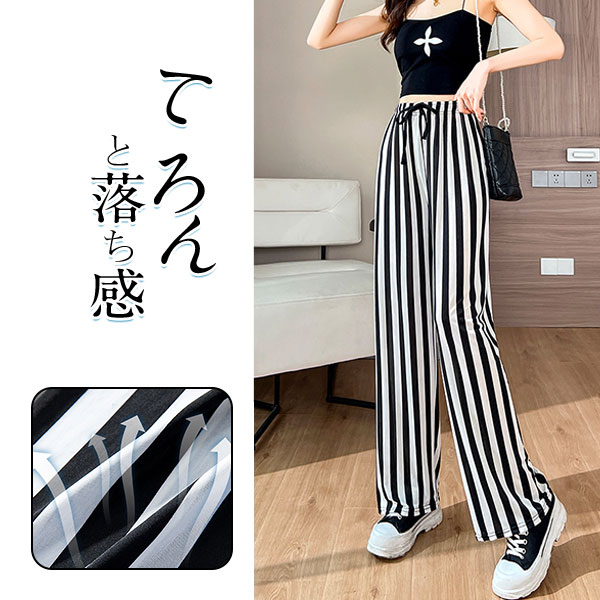 超目玉 ワイドパンツ レディース 接触冷感 ひんやり パンツ ストライプ スカーチョ 体型カバー カジュアル ゆったり 夏 とろみ 着痩せ