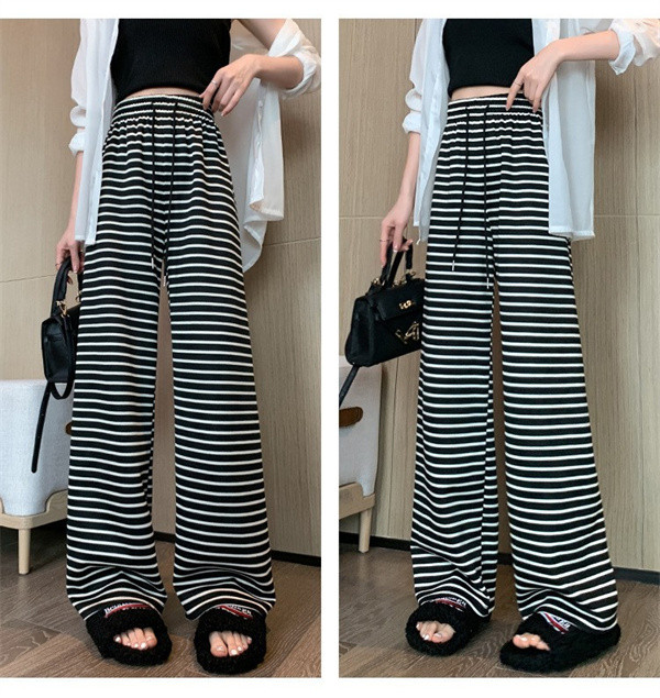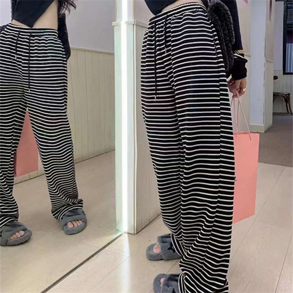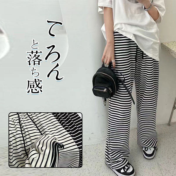爆売中 ワイドパンツ レディース ガウチョパンツ ボトムス 接触冷感 ボーダー柄 プリーツパンツ カジュアル シンプル ルームウェア 春 体型カバー