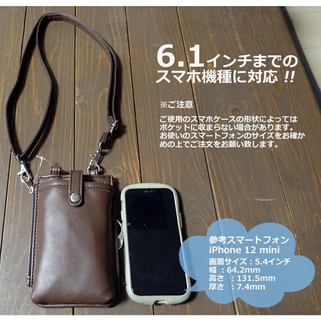 いつでもスマホを身に付けておけて、両手もあくので大変便利♪ 普段使いから、通勤、旅行などでも大活躍♪ ファスナーで付きの小物入れや、背面にオープンポケット、カードポケットもついていて 便利にお使いいただけます。 6.1インチまでのスマホ機種に対応。 ※ご使用のスマホケースの形状によっては、ポケットに収まらない場合があります。 お使いのスマートフォンのサイズをお確かめの上で、ご注文をお願い致します。 ギフト、景品、プレゼントにもぴったり。 -detail- -1e32 スマホショルダー ■サイズ:(約)W10×H16×D2.5cm ■ショルダー長さ:(約)69〜125cm ■合成皮革 ■原産国:中国 ■軽微なほつれやシワ、多少の汚れなどお客様でご対応できる問題については不良品対象外とさせて頂いております。 ■細かなキズや、製造上避けられないシミ・シワなどがある場合があります。 ■汚れが付いた場合は洗濯機に入れずに、よく絞った濡れタオル等で軽く拭き取って下さい。 ■入荷時期によって多少の色味やデザインが異なる場合がございます。商品仕様は、予告無く仕様変更される場合がございます。ご了承の上、ご購入をお願いいたします。 ■お客様都合(イメージ違い)、ご使用に問題の無いキズ・汚れ等による返品交換は承っておりません。 ■サイズにつきましては実数値と規定値で多少の誤差が生じますのであらかじめご了承ください。 ■商品サイズ・カラーは、企画サイズとなります。 ■掲載の商品画像につきましては、モニターの種類・設定等により、実際の商品とは素材感や色味が異なる見え方をする場合があります。 ■素材の性質上耐久性には限界がございますので、過度の重量物を中に入れてのご使用はお避け下さい。 |