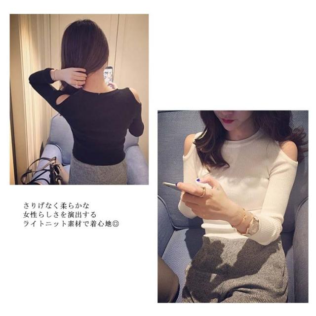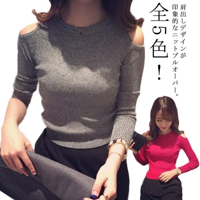 肩だし リブ 送料無料 レディース 肩開きニットトップス トップス ニットトップス セーター ニット 春 ショート丈 無地 コンパクト 長袖 秋 おしゃれ 可愛い 5色 肩出し