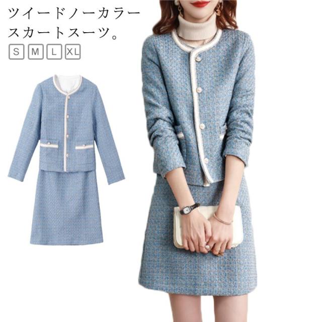 セレモニースーツ セットアップ ママスーツ ツイード 卒業式 2点セット 30代40代50代 入学式 入学式 スカート フォーマル ノーカラーツイードジャケット 卒園式 春新作 スカートスーツ