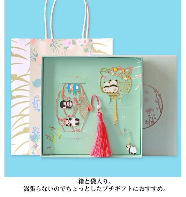 | かわいいパンダのブックマークが登場。 丁寧に作られていて、繊細かつ上品でとても可愛くオシャレ。 本が好きな方に対して、毎日の読書がより楽しくなる。 箱と袋入り、嵩張らないのでちょっとしたプチギフトにおすすめ。 | |
