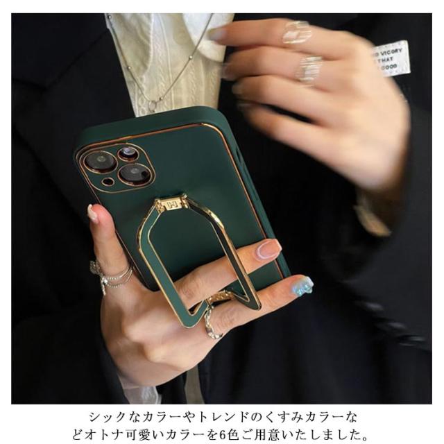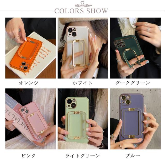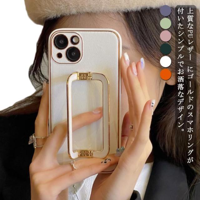 | 上質なPUレザー にゴールドのスマホリングが付いたシンプルでお洒落なデザイン。 スマホリングは、角度調節が可能でスマホスタンドとしても使用できます。 シックなカラーやトレンドのくすみカラーなどオトナ可愛いカラーを6色ご用意いたしました。 | |