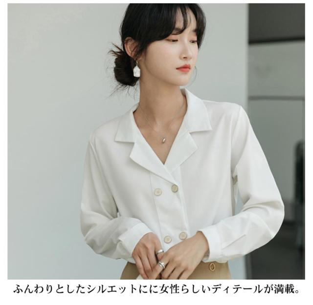 トップス レディース 夏服 送料無料 長袖 ブラウス フォーマル ブラウス ダブルボタン シフォン オフィス 開襟シャツ 大人 ゆったり きれいめ シャツ 春服 秋服 シンプル Vネック シフォン かわいい ビジネス 通勤 OL カジュアル とろみシャツ