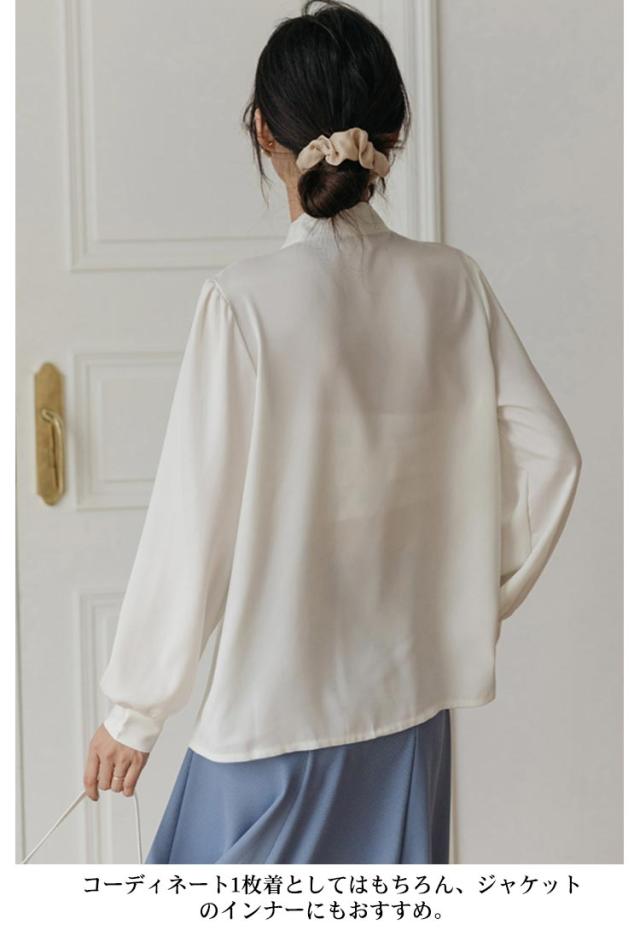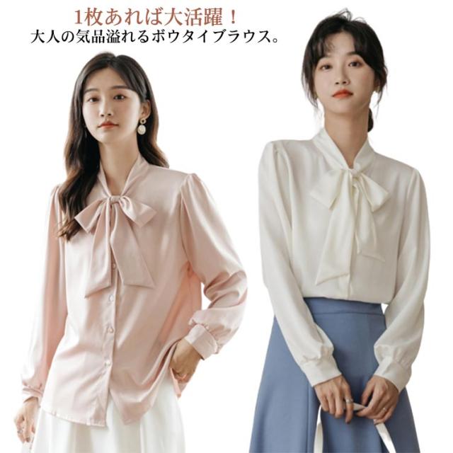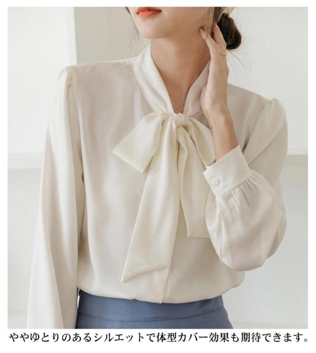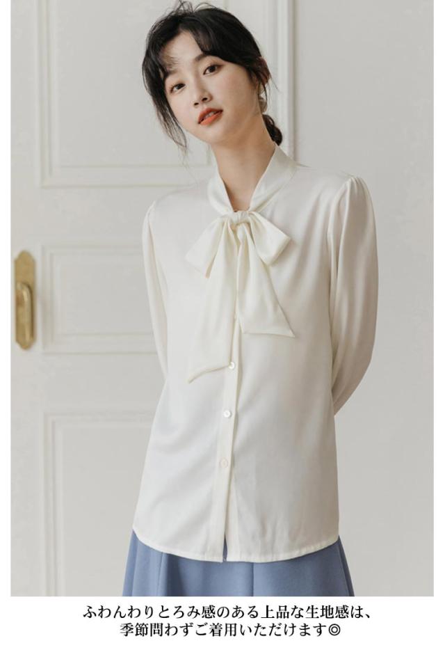 ボウタイブラウス 結婚式 フォーマル 入園式 ブラウス トップス 白 とろみシャツ 長袖 シンプル 送料無料 フェミニン オフィス 大人 シャツ ビジネス 入学式 レディース 卒業式 卒園式 七五三 お受験 白 母 ママ 上品