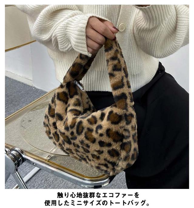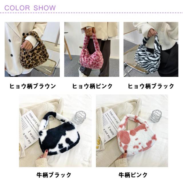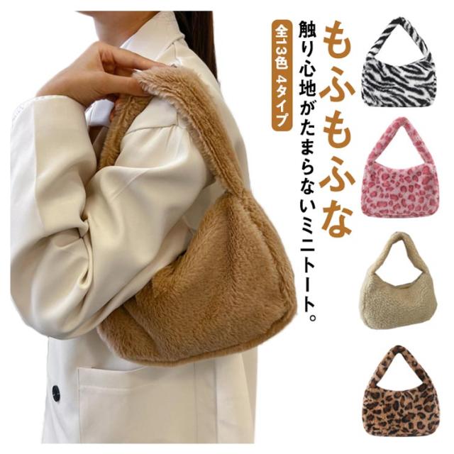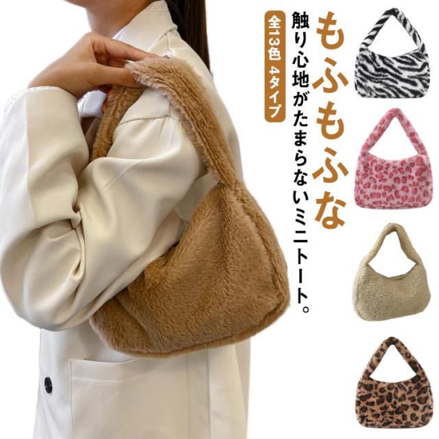 全13色 ヒョウ柄 かわいい モコモコ レディース 春 ふわふわ トートバッグ 手提げバッグ ファーバッグ 牛柄 無地 シンプル ミニトートバッグ 秋冬 ミニバッグ 軽量 4タイプ 大人 おしゃれ