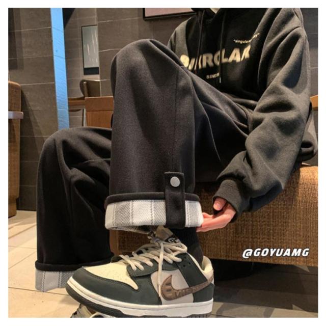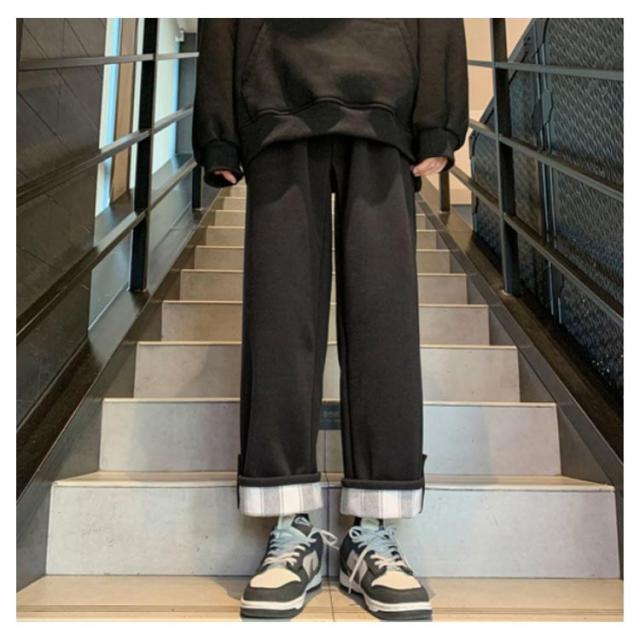 メンズ カジュアルパンツ 厚手 防寒 ストレート ベイカーパンツ ワイドパンツ 秋冬 ボトムス ズボン ガウチョパンツ ズボン ロングパンツ ハイウエスト 大きいサイズ ゆったり カジュアル ワイドパンツ
