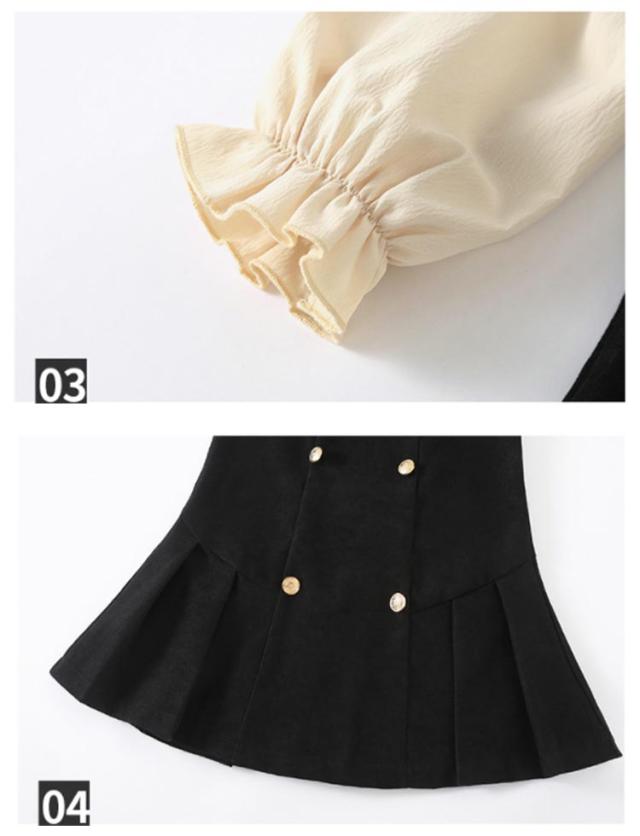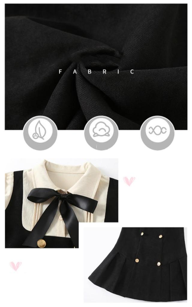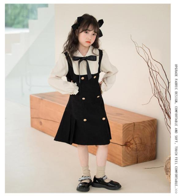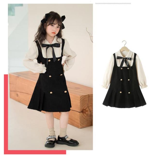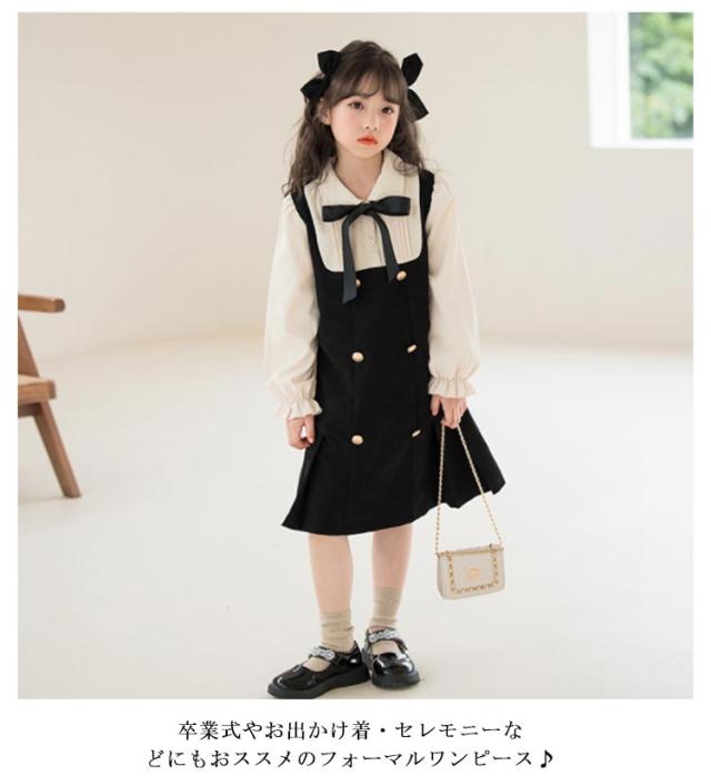 プリーツスカート キッズ ワンピース 女児 重ね着風 長袖 襟付きブラウス 七五三 スクールライク リボン 飾りボタン 可愛い ガールズ 入学式 お誕生日 プレゼント フェイクレイヤード 入園式 卒園式 オシャレ 女の子