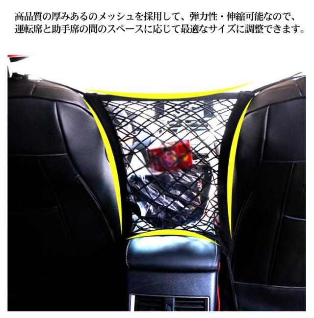 | 車内の空間を有効利用できる飛び出し防止ネットです。 後部座席から身を乗り出すお子様やペットを守るための必需品! 二つのポケット付き、収納力抜群で車の中に散らばりがちな小物をまとめて楽に収納可能。 カバン、携帯、iPad、ティッシュ、傘、手帳、雑誌、本等。 ネット仕様でアイテムが分かりやすくほしい物をサッと取り出すことが出来ます。 収納と同時に後部座席からの邪魔も防げます。 しっかり遮断できますので、車にお子様やペットを乗せる際、後部座席から前に飛び出してこないように防ぐ事が出来ます。 高品質の厚みあるのメッシュを採用して、弾力性・伸縮可能なので、 運転席と助手席の間のスペースに応じて最適なサイズに調整できます。 フックで引っ掛けるだけの簡単取付、引っ掛ける場所があればどこでも対応可能です! 車のみならず、アウトドア用品やDIY用品としても使用いただけます。 アイデア次第で様々なシーンで活用可能です。 | |