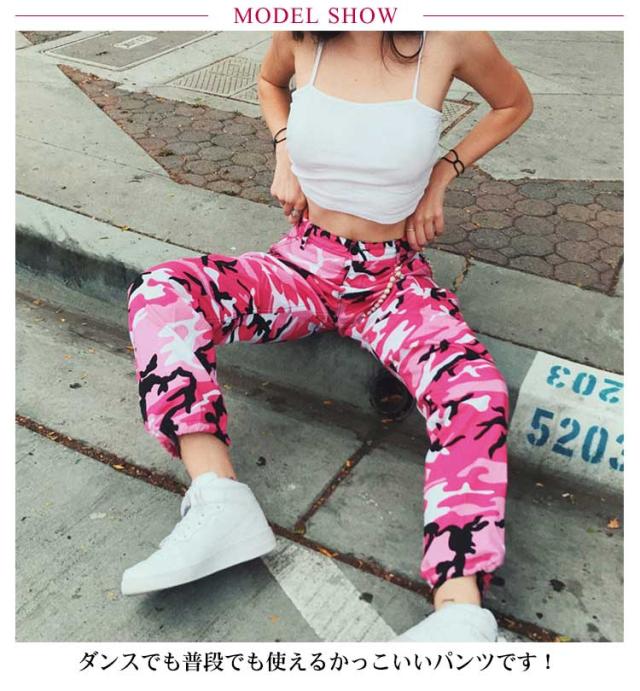 | 迷彩柄がかっこいい! ダンスでも普段でも使えるかっこいいパンツです! ウエストゴムで楽チン、穿きやすくて! 裾にはゴムが入っているのでダボっと着でも大丈夫! カーゴパンツだからポケッドは大収納! 社交ダンスに最適! | |
