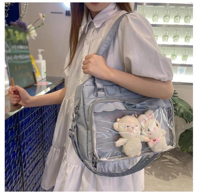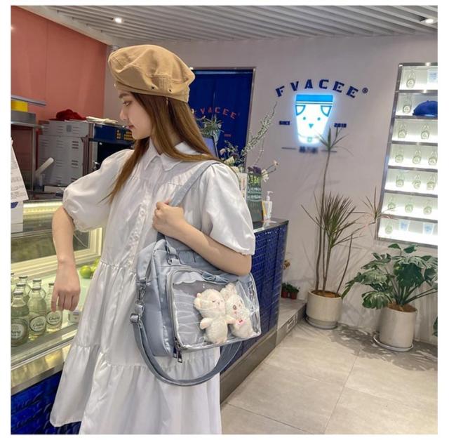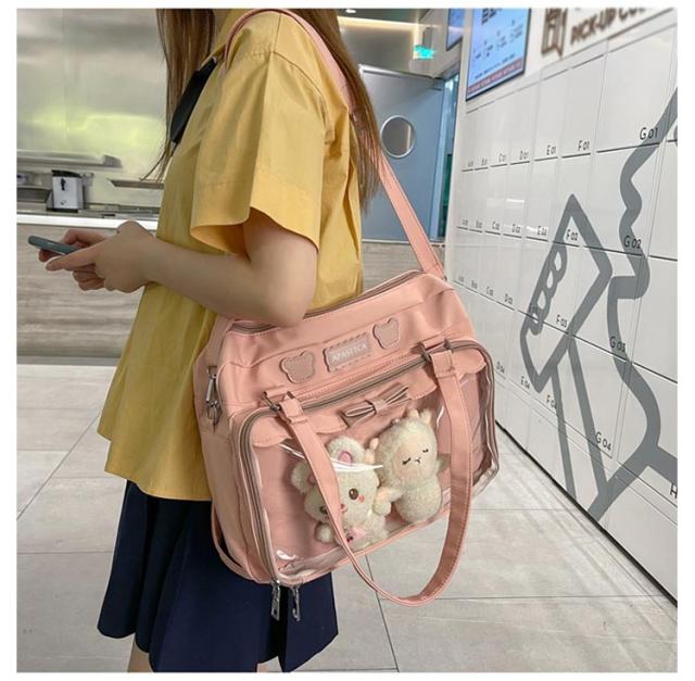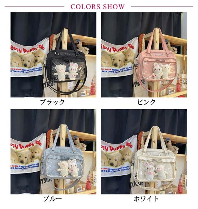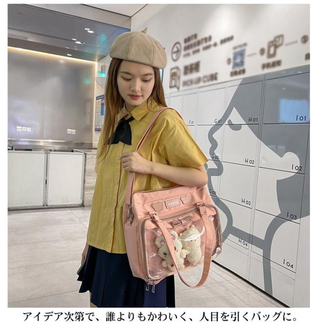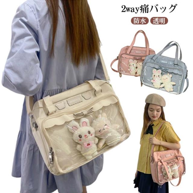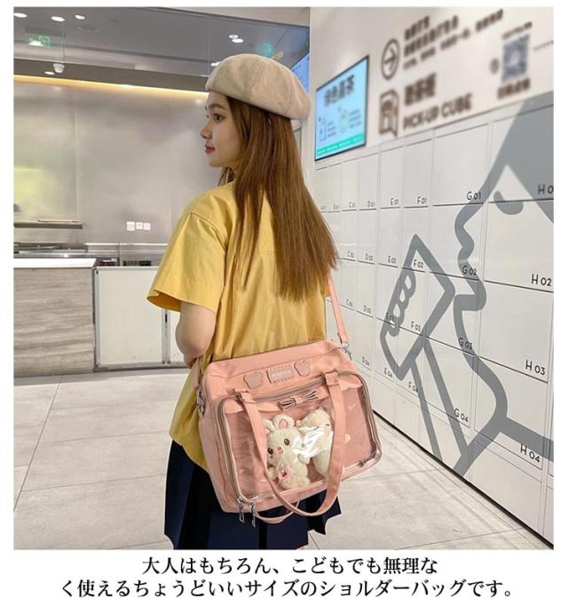 痛バッグ jkバッグ 斜め掛けバッグ ショルダーバッグ 防水 撥水 2way jkバッグ トートバッグ 見せバッグ 透明 ビニール バック かばん デイバック 痛いバッグ ナイロン おしゃれ 通学 イベント用 子供 学生鞄 缶バッジ