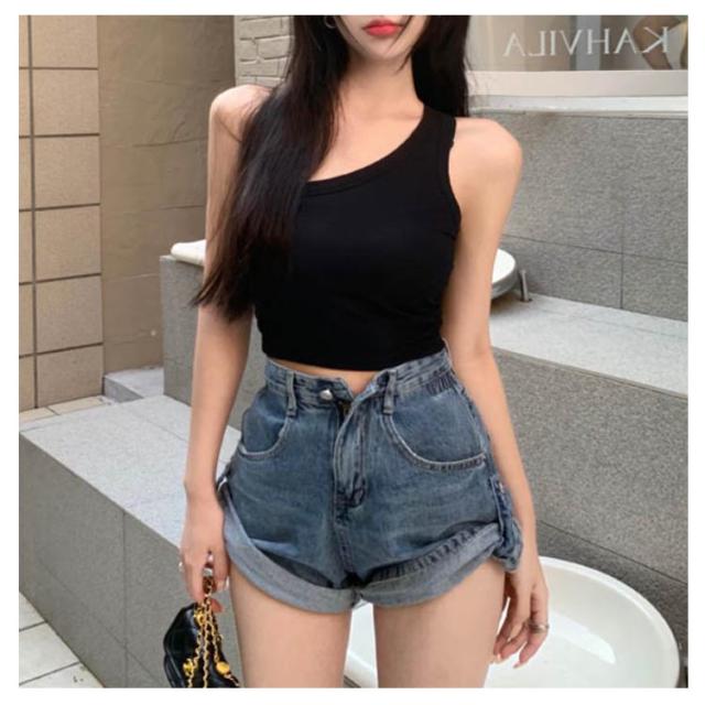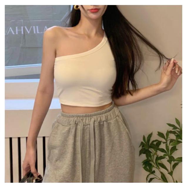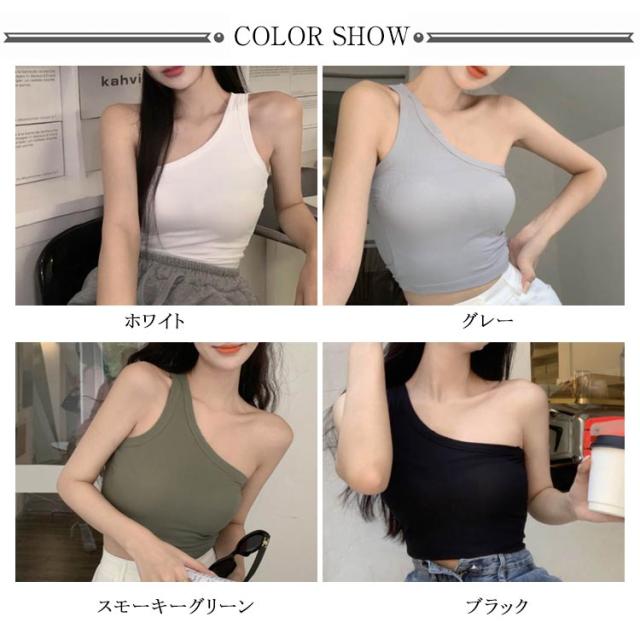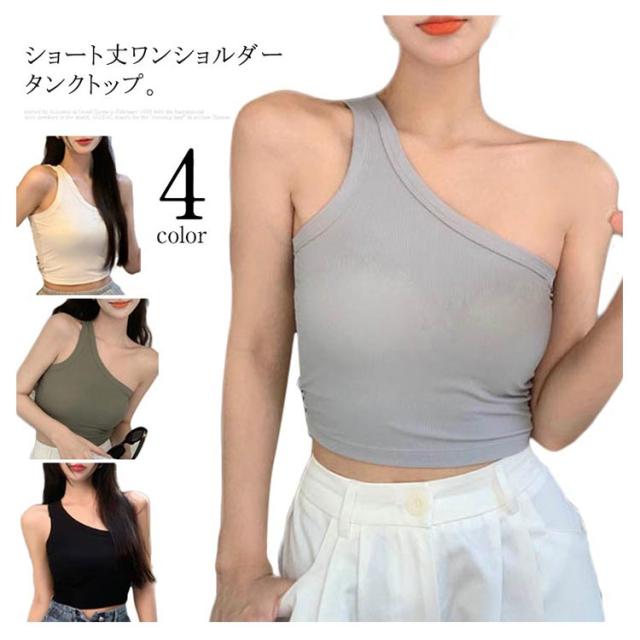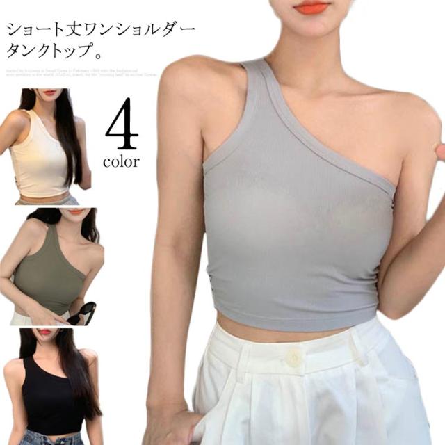 無地 ストリート リブカットソー ワンショルダー カップ付き ショート丈 タンクトップ ノースリーブ リブ素材 肩出し 細身 大人 ダンス 衣装 薄手 コンパクトフィット インナー ギャル衣装 ヒップホップ 夏 フリーサイズ レディース