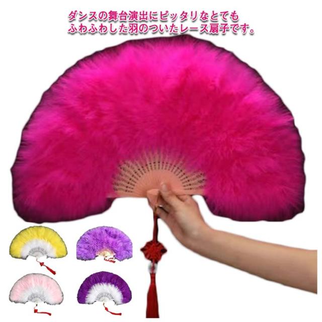 | ダンスの舞台演出にピッタリなとてもふわふわした羽のついたレース扇子です。 軽量だから扇子を振っても疲れない。羽根が抜けにくい、女性にもやすい! 見た目も華やかで練習から気分の上がる、とっておきのアイテムです!! ステージや祭りやイベント、ライブの相性抜群!ドレスを着て扇子踊りのダンスで主役に! 忘年会・新年会・イベントの余興アイテムに! | |