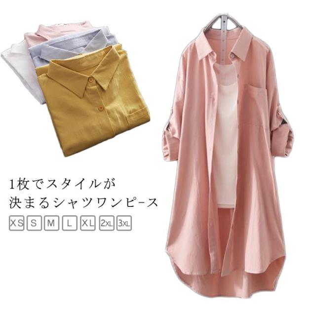 レイヤード ブラウス シャツ ボタンシャツ ロングシャツ ロング オーバーサイズ 長袖 シャツワンピース 上品 着回し カジュアル おしゃれ 春夏 レディース オフィス ゆったり 大きいサイズ トップス 通勤 BF風 体型カバー スキッパー 春 夏 秋 きれいめ