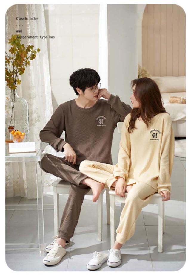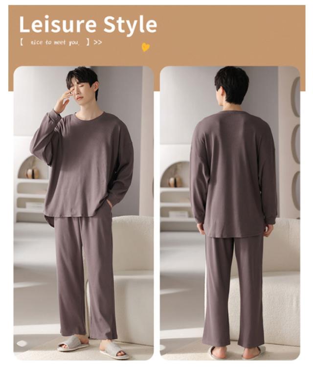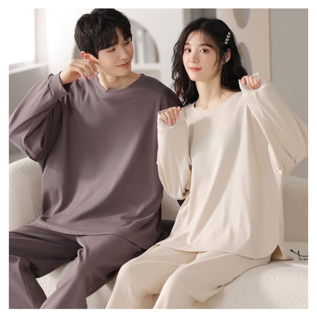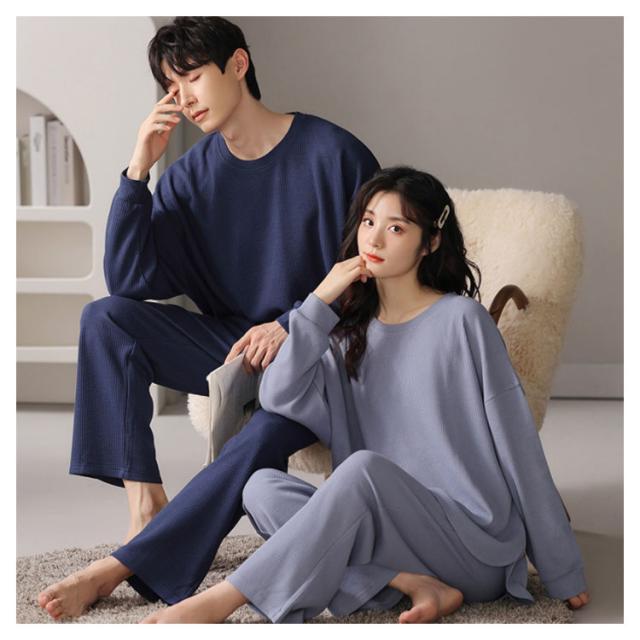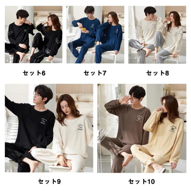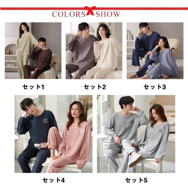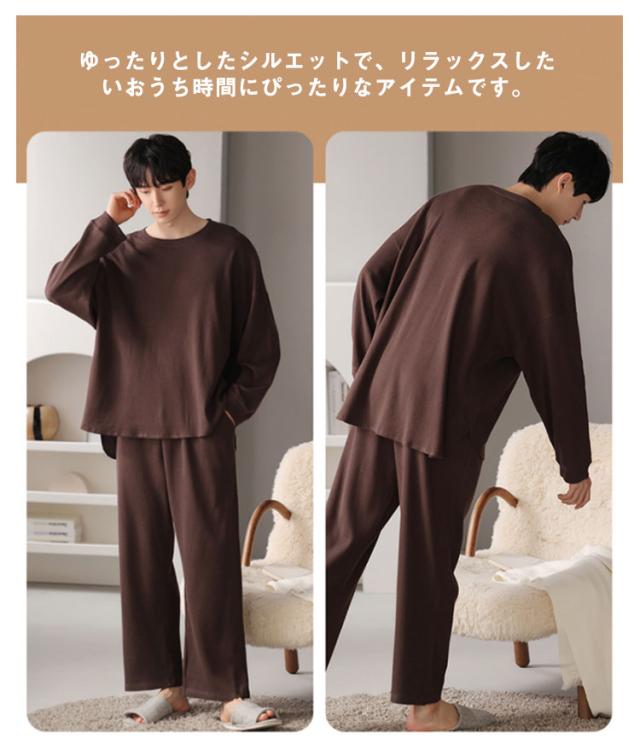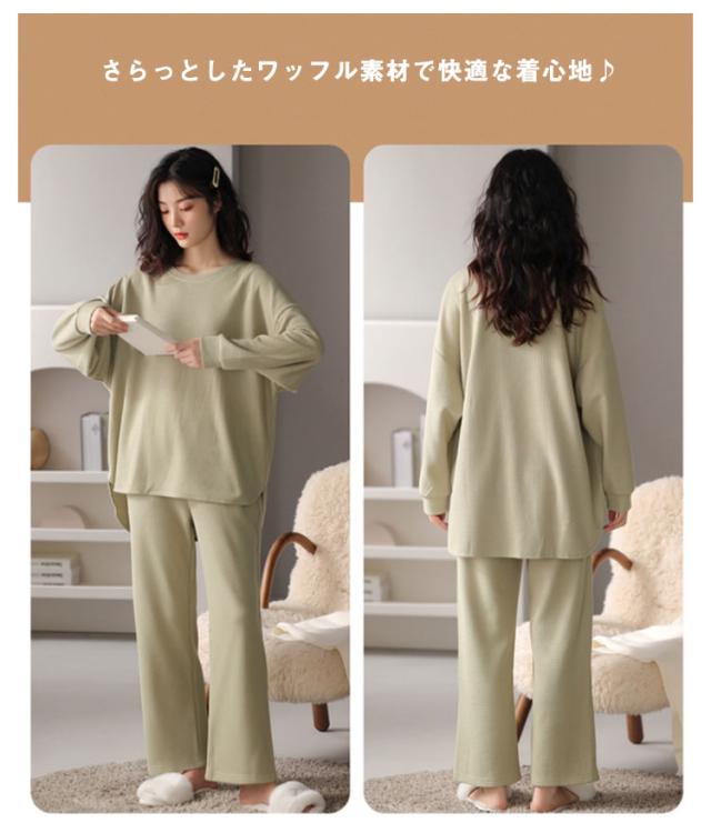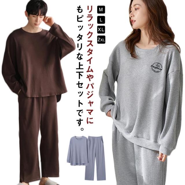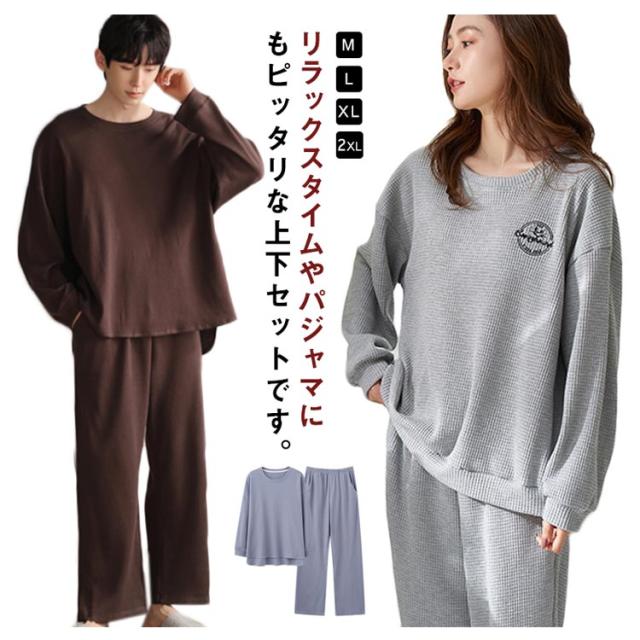 長袖 レディース メンズ コットン 秋 ワッフル 無地 上下セット 冬 シンプル 大きいサイズ 綿 春 部屋着 ルームウェア かわいい ワンマイルウェア セットアップ 長ズボン リラックス ゆったり パジャマ