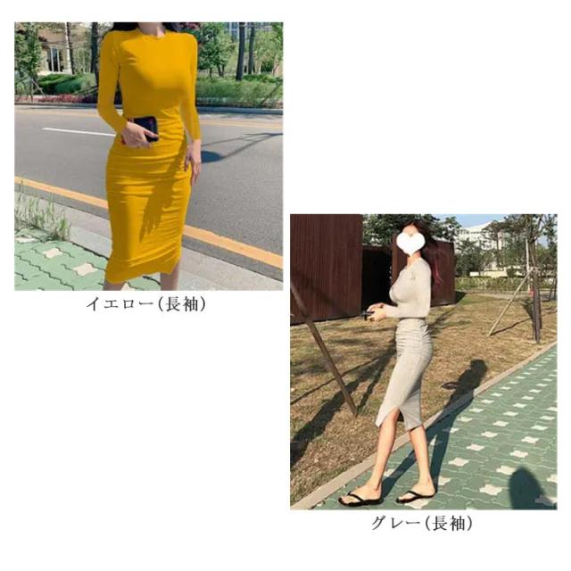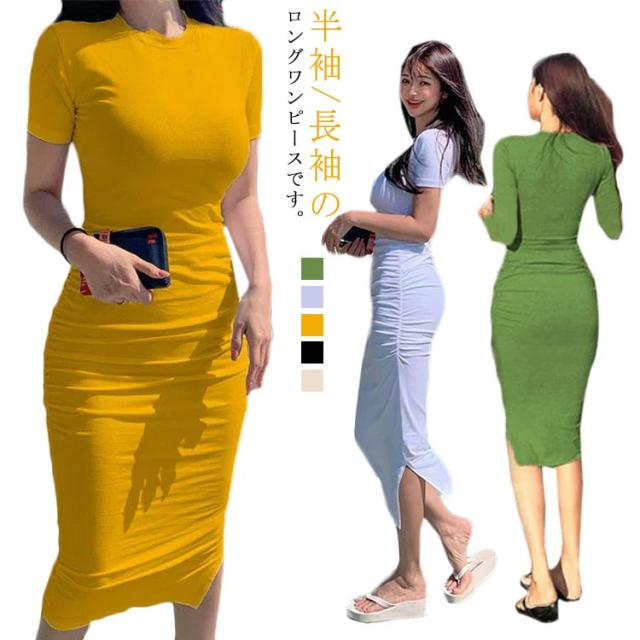 | 半袖/長袖のロングワンピースです。 タイトでボディーラインがきれいにでる設計になっています。 ウエストにはくびれがだせるようシャーリングになっております。 ルームウェア にはもちろん、普段着やデート服にもぴったりのお洋服です。 | |