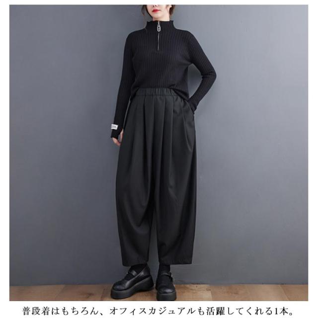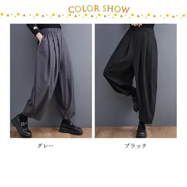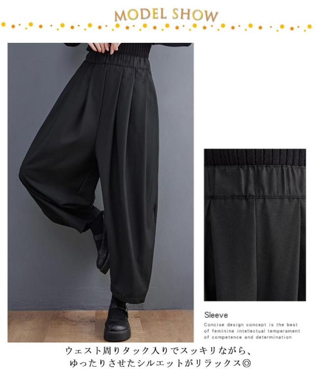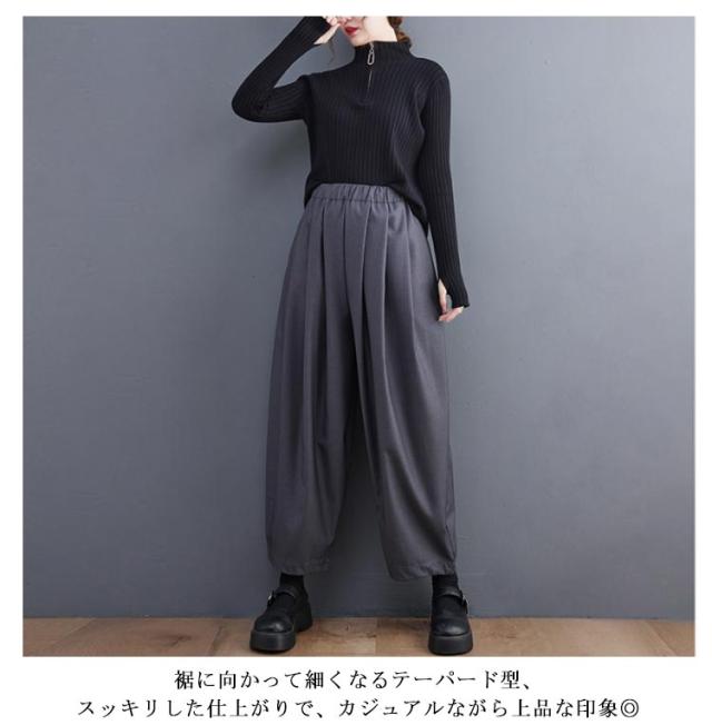 バギーパンツ バルーンパンツ タックパンツ ワイドパンツ ロングパンツ ウェストゴム テーパードパンツ レディース 送料無料 ポケット付き 無地 丸い カジュアル リラックス おしゃれ 韓国ファッション 春服 秋
