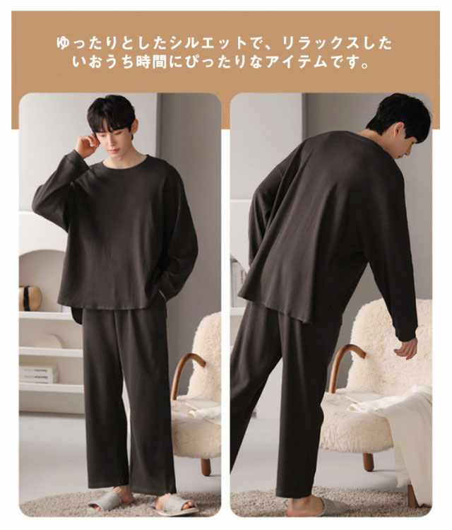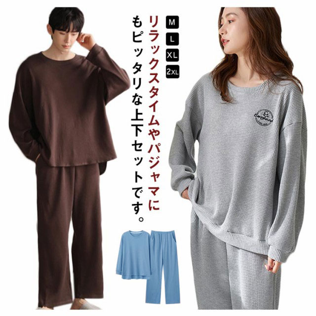 パジャマ 上下セット ワッフル ルームウェア レディース メンズ 春 秋 冬 長袖 大きいサイズ 綿 コットン 部屋着 無地 かわいい ワンマイルウェア セットアップ 長ズボン リラックス ゆったり シンプル 送料無料