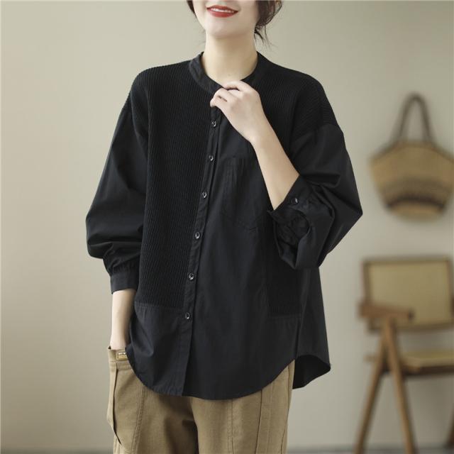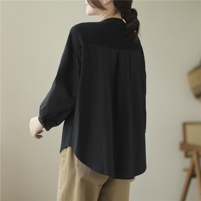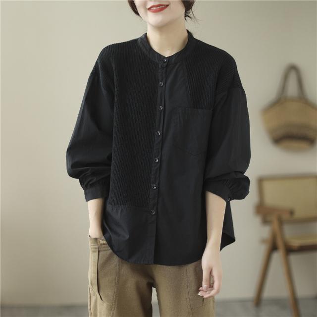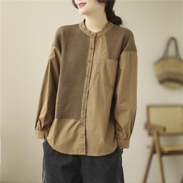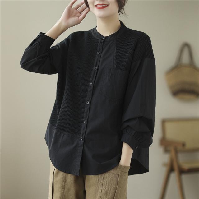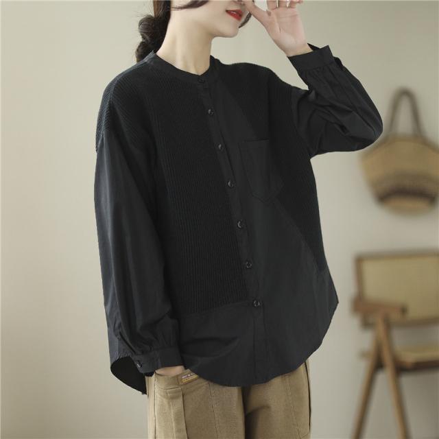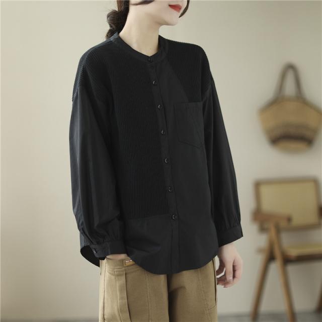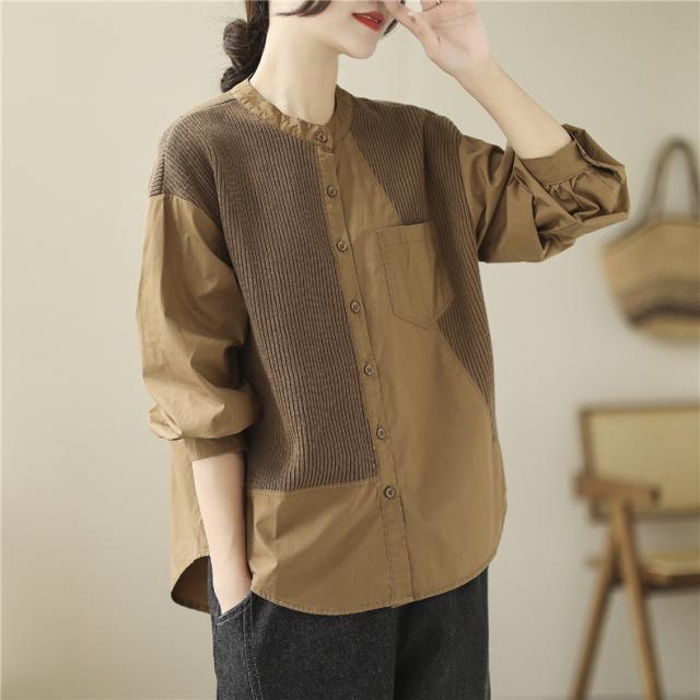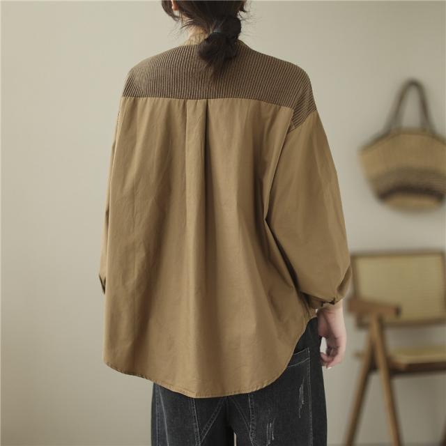 春ブラウス ニット 切り替え レディース 30代40代50代 異素材 無地 トップス 大きいサイズ シンプル 着痩せ ゆったりシルエット