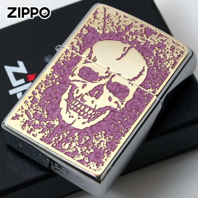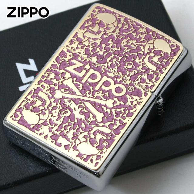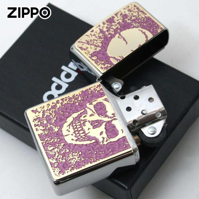 Zippo ジッポライター スカル ドクロ 骸骨 Skull ピンク #200 ゴールドプレート 両面加工 ニッケルメッキ 2MPP-Skull PK GP メール便専用商品