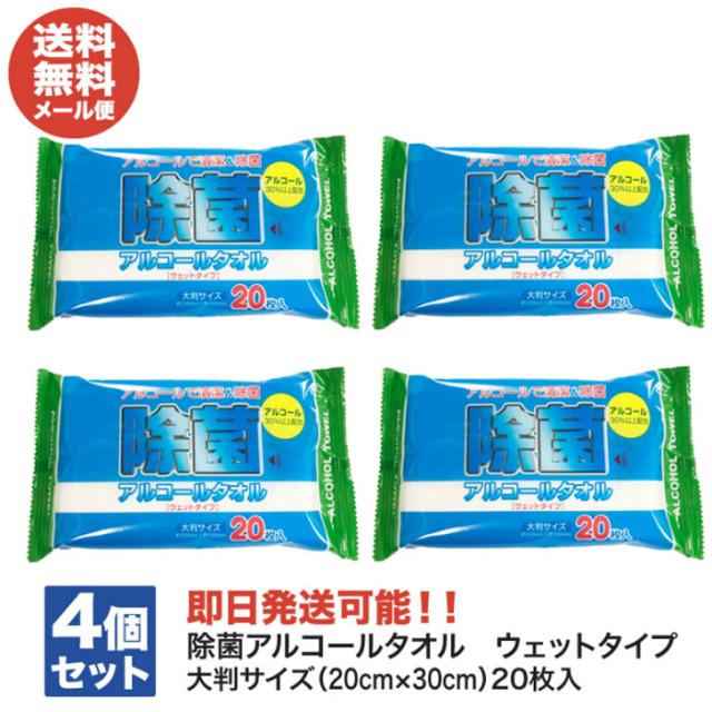 除菌アルコールタオル ウェットタイプ 大判サイズ(20cm×30cm)20枚入り×4個【ウェットティッシュ 除菌シート おしぼり アウトドア 風邪 退職 送別会 ありがとう ギフト お返し 挨拶 お礼 粗品 景品 】