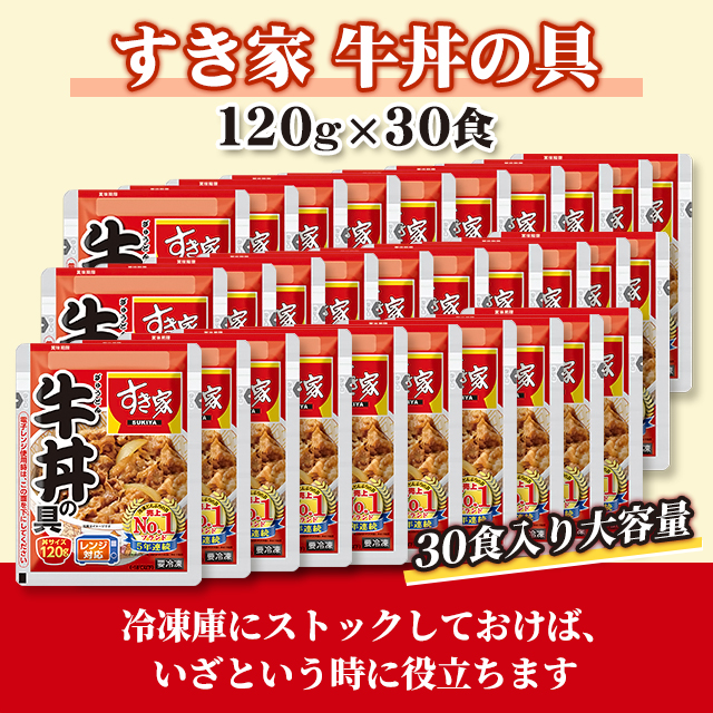 送料込み すき家 牛丼の具 120g×30食 牛丼 30食 セット まとめ買い 冷凍 総菜 冷凍食品 牛どん