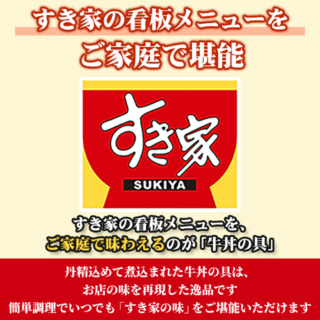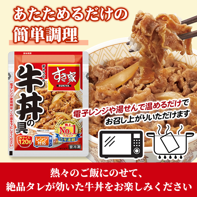 商品名 すき家 牛丼の具 120g×30食 容量 120g×30食 原材料名 【すき家 牛丼の具】牛肉(アメリカ、メキシコ)、たまねぎ、ワイン、しょうゆ、味付け調味料、野菜エキス調味料、果汁(りんご、パイナップル)、香辛料、砂糖、食塩/調味料(アミノ酸等)、(一部に小麦・牛肉・大豆・りんごを含む) アレルギー特定原材料 小麦 賞味期限 商品の発送時点で、90日以上あるものをお届けいたします 保存方法 冷凍(-18℃以下)