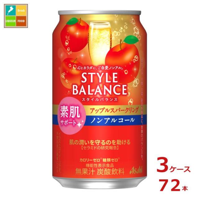 送料無料 アサヒ スタイルバランス素肌サポート アップルスパークリングノンアルコール350ml缶×3ケース(全72本)