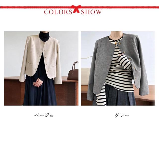 ジャケット 結婚式 ノーカラー ツイードジャケット ライトアウター 長袖 入学式 ツイードコートフォーマル 入園式 卒業式 レディース 白 グレー お宮参り 七五三 服装 母親 20代 30代 40代 ショット丈 送料無料