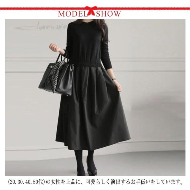 レディース ワンピース 春秋 秋ワンピ ロング ワンピース フォーマル 長袖 aライン ワンピ 切り替え 秋冬 パーティー きれいめ 大人 シンプル おしゃれ 可愛い 通勤 入学式 卒園式 お呼ばれ 結婚式 二次会 黒 送料無料