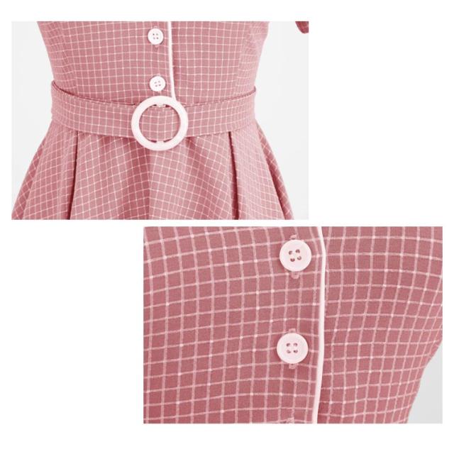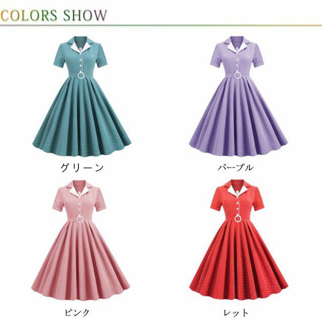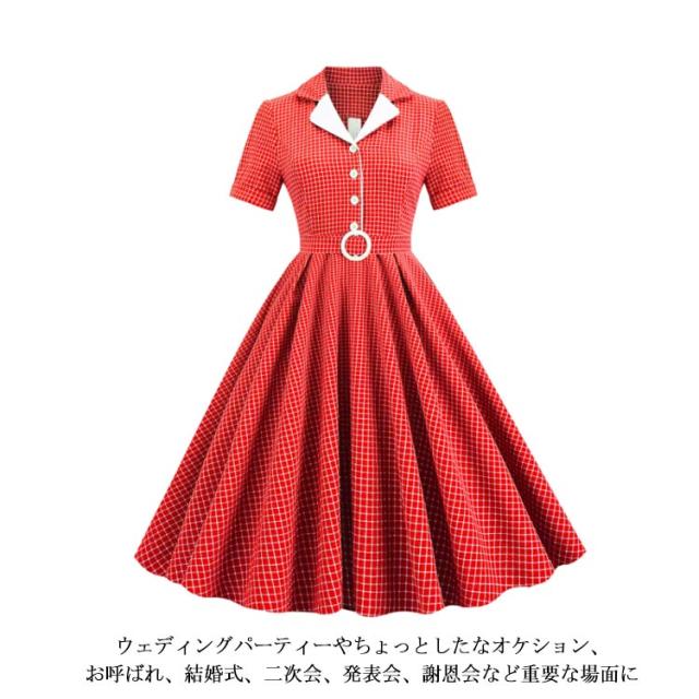 送料無料 ワンピース ドレス S-2XL Vネック 襟あり リボン付き 袖あり レトロワンピース かわいい Aライン フレアワンピース 50年代 お呼ばれ レディース クリスマス コスプレ 誕生日 プレゼント