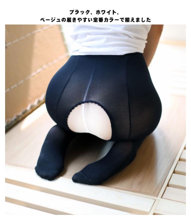 | 蒸れやすいお尻バックを開放的に!! ショーツを上から履けば、トイレでストッキングを脱ぎ降ろししなくてOK♪ 普段着用から、コスプレ、プレイ用にもいろんなシーンで大活躍!! ブラック、ホワイト、ベージュの履きやすい定番カラーで揃えました。 美脚効果もバッチリ♪ | |
