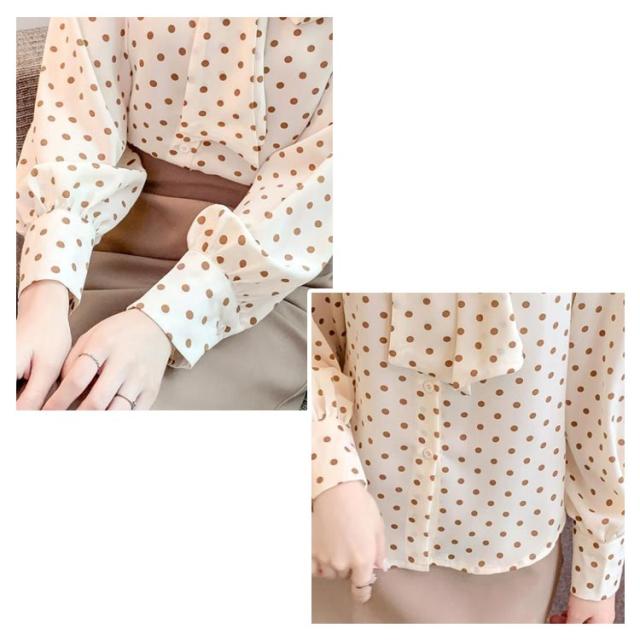 水玉柄 ボウタイシャツ リボン付き 長袖シャツ 送料無料 レディース シャツ ブラウス ドット柄 トップス シフォン とろみシャツ リボン 大人 かわいい 春夏 可愛い 通勤 キレイめ 涼しい 大きサイズ