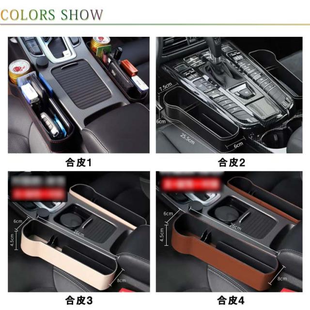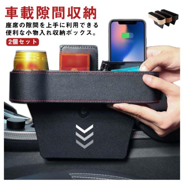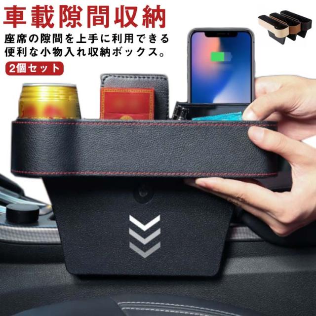 車載 サイド収納ボックス 収納ボックス シートポケット 隙間ポケット 隙間ボックス 運転席 助手席 2個セット カップホルダー 車載隙間収納 車用 コンソール 収納ボックス 小物収納 カー用品 PUレザー ギフト 仕分け